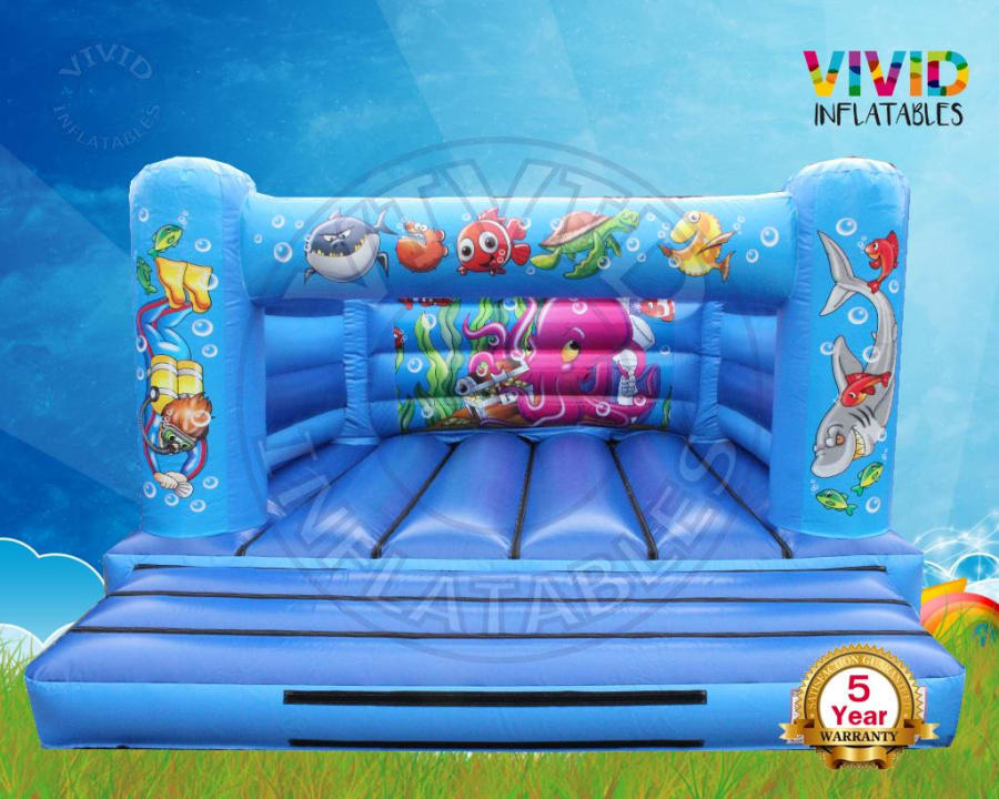 This bouncy castle is perfect for any occasion. Ideal for any sized garden and can be used inside or out. This bouncy castle has fantastic artwork printed and sealed. Has a webbed bed and step for strength and durability. The pillars are sewn into the walls for extra strength and durability. All Bouncy Castles feature external and internal PVC reinforcing on all high load areas. This Bouncy Castle is fully BS EN 14960 compliant British Standard Dimensions Length: 4m57 (15.0') Width: 3m35 (11.0') Height: 3m50 12.0') Comes with : FREE 2 year Manufacturers Warranty on seams back to base Webbed bed and step Sewn in rain cover Filler pipe and Zip 1.5hp blower (this is NOT included in the price but sold separately). Heavy duty Stakes Test Certificate for 12 months to BS EN 14960 British Standard Log book Operating instructions Excellent after sales care and as much advice you will need to run a successful inflatable business. Prices are exclusive of delivery