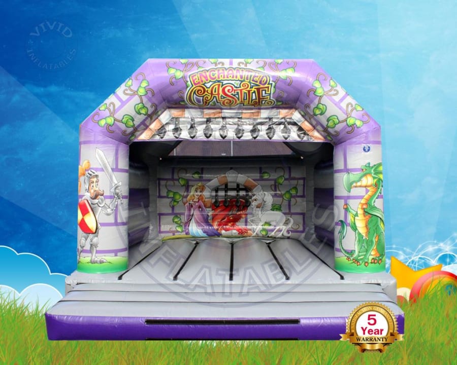 This bouncy castle is perfect for any occasion. Ideal for any sized garden and can be used inside or out. This bouncy castle has fantastic artwork printed and sealed. Has a webbed bed and step for strength and durability. The pillars are sewn into the walls for extra strength and durability. All Bouncy Castles feature external and internal PVC reinforcing on all high load areas. This Bouncy Castle is fully BS EN compliant British Standard Dimensions Length: 4m57 (15.0') Width: 3m35 (11.0') Height: 3m 50 (12.0') Comes with : FREE 2 year Manufacturers Warranty on seams back to base Webbed bed and step Sewn in rain cover Filler pipe and Zip 1.5hp blower Heavy duty Stakes Test Certificate for 12 months to BS EN British Standard Log book Operating instructions Excellent after sales care and as much advice you will need to run a successful inflatable business. Prices are exclusive of delivery