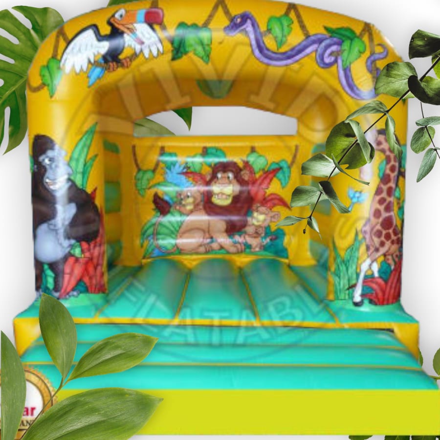 This bouncy castle is perfect for any occasion. Ideal for any sized garden and can be used inside or out. This bouncy castle has fantastic artwork printed and sealed. Has a webbed bed and step for strength and durability. The pillars are sewn into the walls for extra strength and durability. All Bouncy Castles feature external and internal PVC reinforcing on all high load areas. This Bouncy Castle is fully BS EN 14960 compliant British Standard Dimensions Length: 4m57 (15.0') Width: 3m35 (11.0') Height: 3m00 (10.0') Comes with : FREE 2 year Manufacturers Warranty on seams back to base. Webbed bed and step Sewn in rain cover Filler pipe and Zip 1.5hp blower (This is not Included in price but can be sold separately). Heavy duty Stakes