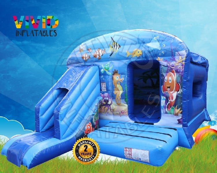 This bouncy castle is perfect for any occasion. Ideal for any sized garden and can be used inside or out. This bouncy castle has fantastic artwork printed and sealed. Has a webbed bed and step for strength and durability. The pillars are sewn into the walls for extra strength and durability. All Bouncy Castles feature external and internal PVC reinforcing on all high load areas. This Bouncy Castle is fully BS EN 14960 compliant British Standard Dimensions Length: 5m54 (18.2') Width: 3m 83 (12.5') Height: 2m60 (8.5') Comes with : FREE 2 year Manufacturers Warranty on seams back to base Webbed bed and step Sewn in rain cover Filler pipe and Zip 1.5hp blower (The blower is not included but can be sold separately). Heavy duty Stakes Test Certificate for 12 months to BS EN British Standard Log book Operating instructions Excellent after sales care and as much advice you will need to run a successful inflatable business. Prices are exclusive of delivery.
