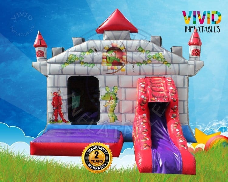 This bouncy castle is perfect for any occasion. Ideal for any sized garden and can be used inside or out. This bouncy castle has fantastic artwork printed and sealed. Has a webbed bed and step for strength and durability. The pillars are sewn into the walls for extra strength and durability. All Bouncy Castles feature external and internal PVC reinforcing on all high load areas. This Bouncy Castle is fully BS EN compliant British Standard Dimensions Length: 5m97 (19.5') Width: 4m57 (15.0') Height: 3m95 (13.0') Comes with : FREE 2 year Manufacturers Warranty on seams back to base Webbed bed and step Sewn in rain cover Filler pipe and Zip 1.5hp blower (This is not included in price but sold separately) Heavy duty Stakes Test Certificate for 12 months to BSEN British Standard Log book Operating instructions Excellent after sales care and as much advice you will need to run a successful inflatable business. Prices are exclusive of delivery