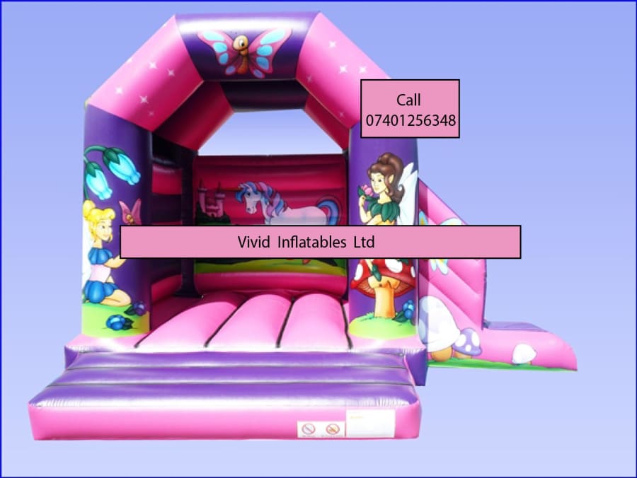 15ft x 14ft Castle Fairy with side slide (Total size 15ft x 14ft).